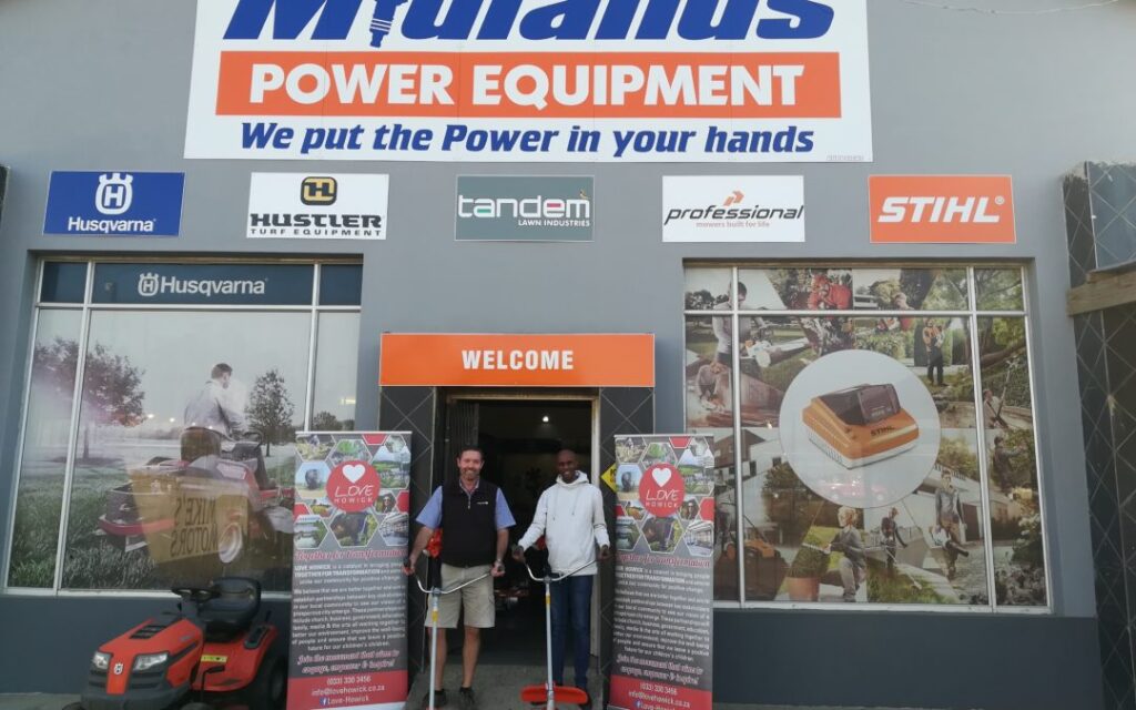 Love Howick is ecstatic to celebrate the donation of 2 additional, brand new, Husqvarna brushcutters to the Renoverge Project! The Renoverge project is a Love Howick initiative to beautify Howick and offer opportunities for the community to partner in making Howick an even more marvellous place to live. The project gains further momentum with the addition of these magnificent machines donated by Midlands Power Equipment.